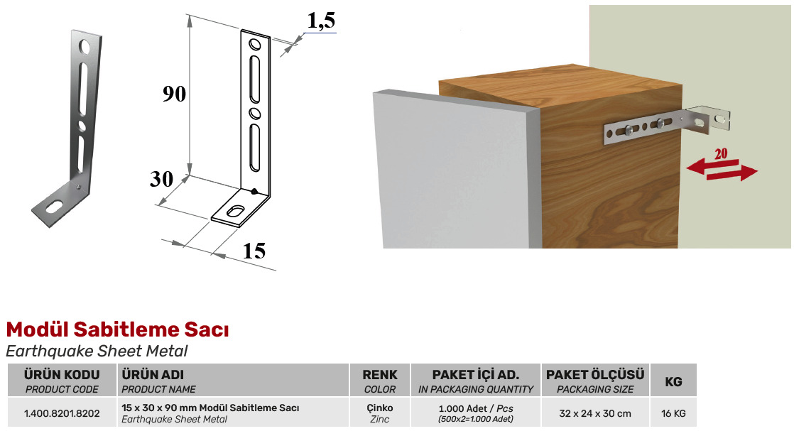 15x30x90 mm Modül Sabitleme Sacı